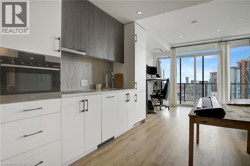 THIS UNIT COMES WITH A SHORT TERM RENTAL LICENSE!!!!!! IT ALSO COMES WITH BUILT-IN MURPHY BED THAT CONVERTS TO A DESK. This newly constructed residence presents a perfect combination of thoughtful design and a prime downtown location. As you enter, you’ll be greeted by a spacious layout featuring large floor-to-ceiling windows that flood the space with natural light and provide stunning views of the city. The apartment also features a private balcony, offering an ideal spot to relax while taking in the vibrant cityscape. One of the standout features is the versatile Murphy bed, which easily transforms into a desk, allowing for efficient use of space and flexibility for both work and relaxation. With its proximity to Kitchener's top dining spots, amenities, and convenient transportation options, this location ensures everything you need is just moments away. Don’t miss the chance to make 1710 - 741 King St W your new home. Book a viewing today and experience the best of urban living in The Bright Building. (id:6289)