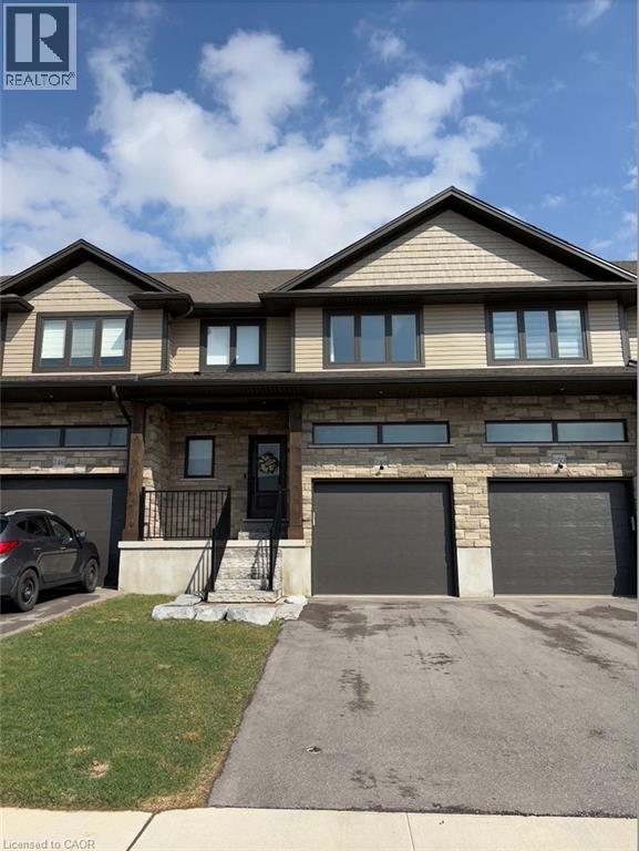 This like-new, spacious townhouse offers 1,745 sq.ft. of living space. The main floor features 9' ceilings, a bright great room with a sliding door and two windows, and a stylish kitchen with custom white cabinetry, a quartz island, undermount lighting, and soft-close drawers. Pot lights illuminate the kitchen, dining, and great room with fireplace, while a convenient 2-piece powder room and upgraded trim package add to the appeal. Luxury vinyl plank flooring and hardwood stairs with wrought iron railing lead to the upper level, where you'll find a laundry room with a large closet and a master bedroom that easily fits a king-size bed, with a walk-in closet and a 3-piece ensuite featuring a large tiled shower and dual undermount sinks. Two additional bedrooms share a 5-piece bathroom with a 1-piece fiberglass tub/shower, custom vanity, and quartz countertops. Other highlights include Strassburger windows, spray foam insulation in select areas, a 12' x 23' garage, a sodded lot, central air, HVAC, and an asphalt driveway. Plus, there are NO condo fees! This home blends luxury and practicality—don’t miss out! (id:6289)