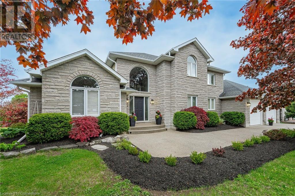 PRESTIGIOUS CUSTOM-BUILT STONE HOME with a walkout basement, offering the perfect opportunity for an in-law suite or apartment. This stunning residence, available for sale for the first time, features a full natural stone exterior and is situated in one of Cambridge’s most sought after neighbourhoods. True pride of ownership shines throughout this meticulously maintained home, gleaming with perfection from top to bottom. Nestled on over 1/2 acre of professionally landscaped grounds, this 5-bedroom 4-bath home combines privacy, luxury, and unmatched craftsmanship inside and out. Designed for extended families or those seeking versatility, it features two separate side entrances (one interior from garage and one exterior), a walkout basement, and excellent potential for a full in-law suite or second living space. With over 3,000 sqft of finished living space, the layout balances functionality and elegance. Step outside to your private backyard oasis featuring a spectacular saltwater inground pool (new liner 2025), fully fenced with mature cedar hedges for privacy. Surrounded by interlock stone, a flagstone patio, and a composite deck with tempered glass railings, this space is perfect for entertaining and relaxing. Constructed by the original owner with a focus on premium construction, attention to detail, and above standard workmanship (5/8 drywall and double 5/8 subfloor to name a few).Oversized windows with California (wood) shutters that provides natural light and privacy. The kitchen boasts one of a kind high-end Italian cabinetry, stainless steel appliances, gas stove, and an R/O system (also connected to fridge water line), opening to a bright and spacious living area with a natural gas f/p. The partially finished walkout basement has a new 3-pc bath with heated floors, a rain shower and 2 partially finished rooms (drywall and painted). Extra wide double car garage with exposed aggregate driveway (6 car parking). COUNTRY IN THE CITY in a coveted location. (id:6289)