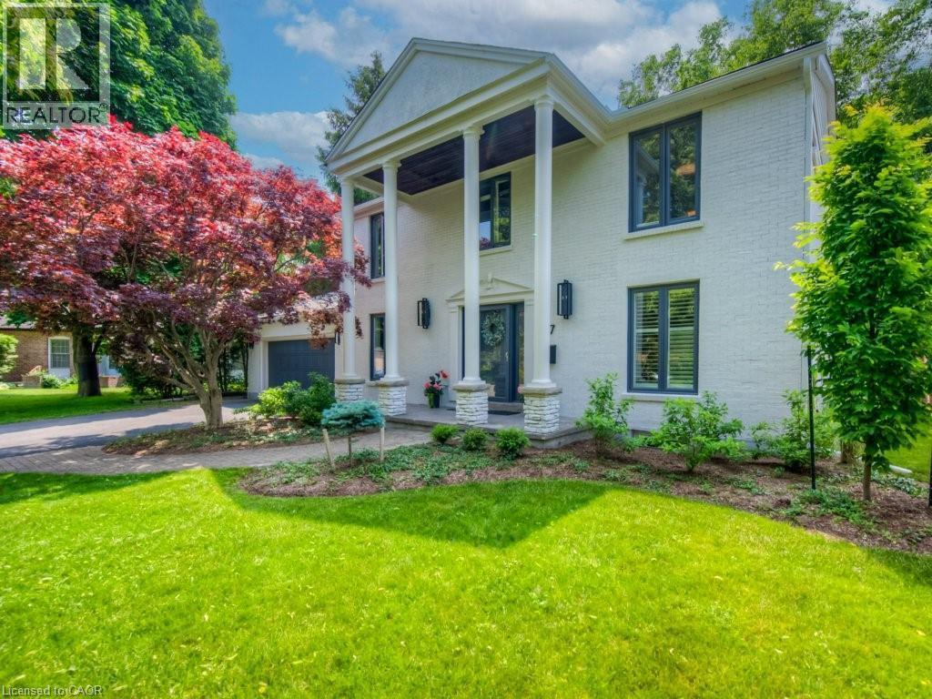 Opportunities like this don’t come around often! Nestled at the top of a quiet private court and backing onto greenspace, this impressive home is located in one of Waterloo’s most prestigious neighbourhoods. Boasting over 4,000 sq ft of beautifully finished living space, this property has seen numerous recent updates. From the moment you arrive, the grand curb appeal is undeniable, with manicured grounds, a spacious front porch framed by stately columns, and striking modern brickwork. Step inside to a spacious foyer that opens into a timeless, traditional layout featuring formal living and dining rooms, a main floor den or office, and a generous kitchen complete with a large island, skylight, built-in appliances, and a walkout to the backyard. The family room is equally impressive—and don’t forget, this level features not one, but three fireplaces! Upstairs, the home has been completely redesigned with a sleek, modern touch. The primary suite offers a spacious walk-in closet and a luxurious private ensuite with heated floors and a curbless glass shower. 3 more bedrooms—2 with walk-in closets all share a well-finished family bath and maintain the home’s overall quality. The lower level is ideal for unwinding or movie nights, featuring a stunning custom feature wall that sets the perfect mood. Just steps (120m) from the private community pool and tennis courts, this is a rare chance to live in a coveted neighbourhood with all the space and style you’ve been waiting for. Don’t miss it! (id:6289)