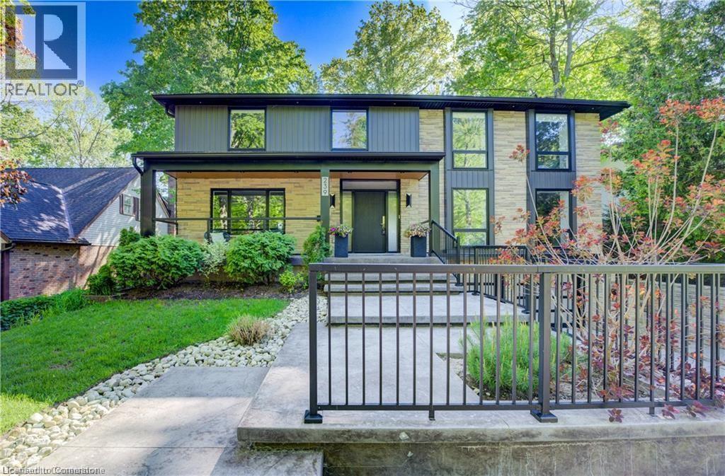 Welcome to your personal retreat in the city! Nestled in a sought-after neighborhood, this thoughtfully redesigned home blends modern luxury with nature at your doorstep. Every detail has been carefully crafted for both comfort and style. From the moment you arrive, the landscaped exterior, oversized windows, and covered porch create an inviting first impression. Inside, a grand staircase and designer lighting set the tone. The formal sitting room flows into a bright dining area, both featuring coffered ceilings and elegant fixtures. The chef’s kitchen shines with custom cabinetry, Jenn Air appliances, a pot filler, and a waterfall island with breakfast seating. Large windows frame views of the private backyard, filling the space with light. A walk-in pantry ensures ample storage. The family room is perfect for relaxing, with soaring ceilings and a stunning floor-to-ceiling fireplace. This level also offers a functional laundry suite, mud room, powder room, and home office. Upstairs, four spacious bedrooms feature hardwood floors and large closets. The primary suite offers forest views, a custom walk-in closet, and a spa-like ensuite with a walk-in shower, heated floors, and a freestanding tub. Another ensuite and a Jack and Jill bathroom offer all the convenience and comforts your family needs. The finished lower level includes a rec room, bar, 4 piece bath, a 5th bedroom and a private entry. Outside, enjoy the expansive deck, covered patio, and mature trees backing onto David Johnston Technology Park. This exceptional home offers it all—schedule your tour today! (id:6289)