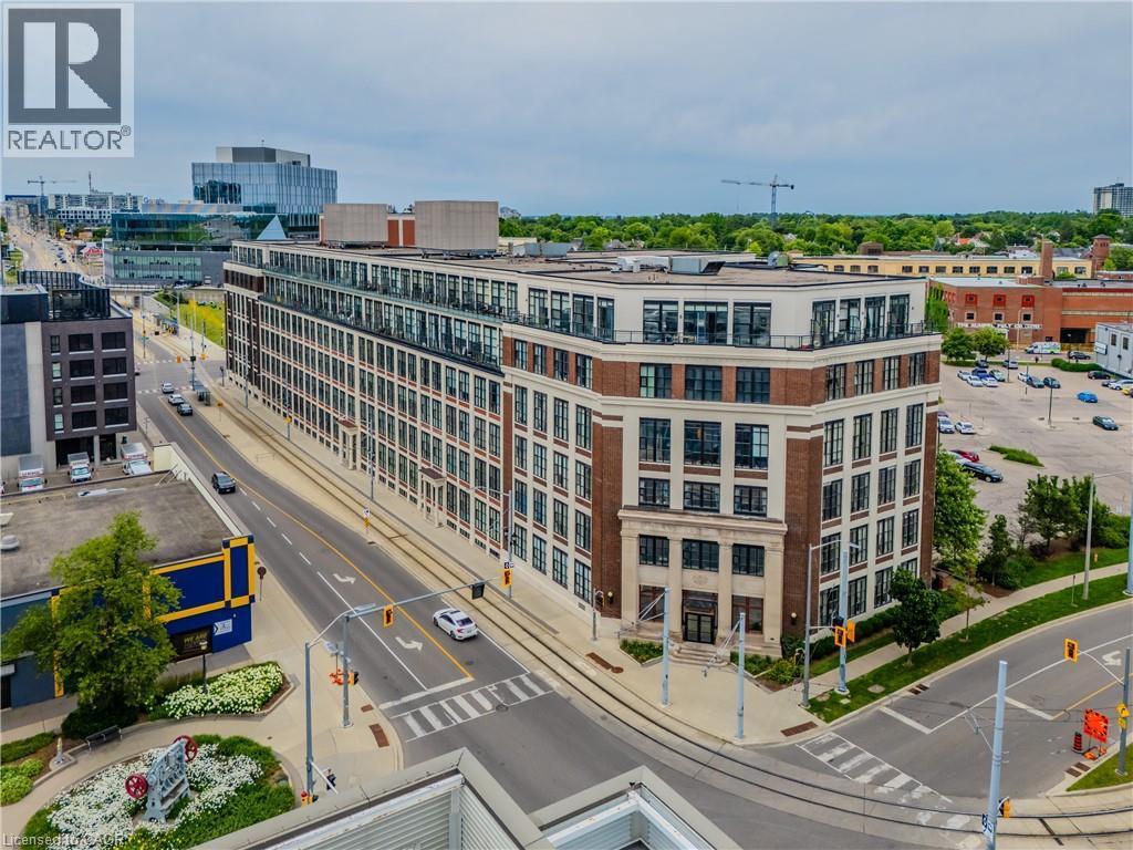 Welcome to Unit 609 at The Kaufman Lofts, a beautiful penthouse condominium with a central location. Set within a historic facade of exposed concrete and brick, this spacious loft offers an ideal blend of industrial charm and modern sophistication. Inside, you'll find a generous and 976 square foot floor plan featuring 11-foot ceilings, two bedrooms, two bathrooms, in-suite laundry, and an expansive 19’ x 19’ private terrace — perfect for relaxing or entertaining. The open-concept living space includes an eat-in kitchen with modern finishes that overlooks the bright living area and terrace. Floor-to-ceiling windows flood the space with natural light, creating an airy and inviting atmosphere. The primary suite offers a spacious walk-in closet and a luxurious 4-piece ensuite bathroom. The versatile second bedroom easily accommodates a queen or king bed and also works beautifully as a home office. Rare for downtown apartments, this unit offers two parking spaces and has the added convenience of a storage locker. Located just minutes from Victoria Park, restaurants, the Google offices, and the University of Waterloo and Wilfrid Laurier graduate campuses, this location is ideal for professionals and academics. Looking to the future, you'll be directly across from Waterloo Region’s upcoming transit hub, offering seamless connections to GO Transit, VIA Rail, and the ION Light Rail, linking the Waterloo-Toronto Innovation Corridor with two-way, all-day service. (id:6289)