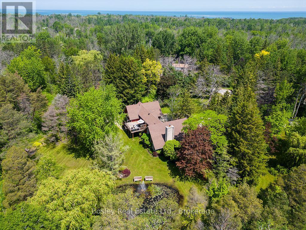 Nestled on a secluded, park-like acre within the Town of Collingwood, this exceptional estate blends refined luxury with natural beauty. Surrounded by towering mature trees, perennial gardens, and a spring-fed pond from Silver Creek, this renovated five-bedroom, five-bathroom residence offers the ultimate in privacy and tranquility. Designed for multi-generational living or sophisticated entertaining, the home features flexible dual-family layouts, with separate quarters ideal for extended family or guests. The elegant interior showcases contemporary finishes, high-end renovations throughout. Enjoy the convenience of upper and lower-level laundry rooms and the peace of mind of modern infrastructure, including municipal water, natural gas, and fibe internet. Step outside to your own four-season oasis a series of breathtaking outdoor living spaces perfect for gathering or relaxing. Unwind in the newly added outdoor sauna, or entertain at the stunning custom outdoor bar featuring a roll-up window, loft sleeping quarters, and generous storage. A heated and cooled three-car attached garage with workshop offers plenty of space for all your recreational gear and projects. Ideally located just minutes from skiing, golf, Georgian Bay, scenic trails, and Collingwoods charming shops and dining this rare offering truly captures the best of luxurious country living with urban convenience. (id:6289)
