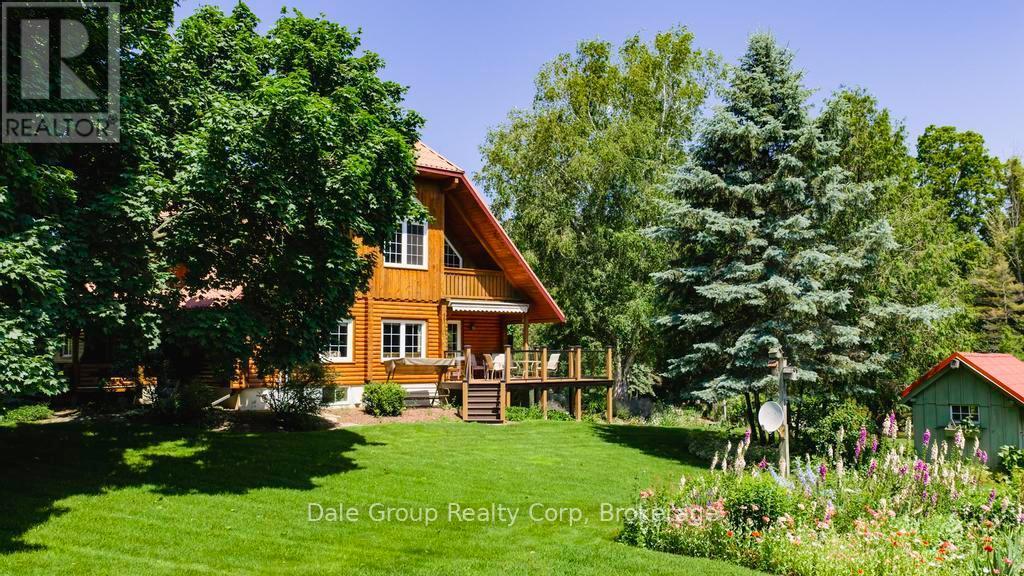 Escape to tranquility without sacrificing convenience in this beautifully crafted 3-4 bedroom, 3 bath log home nestled on 3.36 acres of serene, mature treed property. Perfectly situated just minutes from Goderich Ontario, this property offers the best of both worlds: peaceful privacy and easy access to local amenities. Built in 1996, this warm and inviting home features a spacious open-concept layout with rustic character throughout. Enjoy year-round comfort with efficient in-floor radiant gas heat, ductless heating/cooling units upstairs, and the cozy ambiance of a wood-burning European Kachelofen. The partially finished basement adds versatile living space perfect for a family room, home office, or gym area. Enjoy morning coffee or evening sunsets on the deck overlooking your very own pond with water feature and wildlife, a picturesque centerpiece to the lush landscape. A double car garage provides room for vehicles, and an outdoor shed / workshop with ample space for tools, outdoor gear, or use for a home based business. Whether you are looking for a year-round residence or a secluded retreat, this unique log home offers character, comfort, and privacy in a prime location. This is a rare opportunity. Don't miss out on this first time offered property. (id:6289)