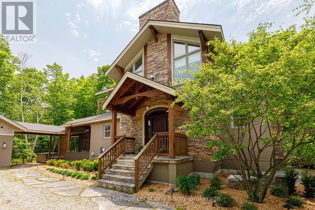 Beautiful, spacious chalet in prestigious Nipissing Ridge near Alpine & Craigleith ski clubs & Blue Mountain's year round activities inc skiing, golf, trails, shopping, dining, & more! This 3133 SF, 4 bedroom chalet sits on 1/3 acre, xeriscaped, automated sprinklers, and treed for maximum ease, enjoyment & privacy. Custom built for the current owner & completed in 2004, it continues to exude timeless quality & is ready for new owners to enjoy the excitement of all the area has to offer. The top floor offers an inviting living area w a soaring vaulted ceiling, cozy gas fireplace, & 2 pc bathroom. The open concept is perfect for entertaining, both inside, & outside on the deck w automated shade cover. A separate den for reading or work completes the top floor space. The main floor of the home offers the primary bedroom w 3 pc ensuite bath, + two guest bedrooms w a 3 pc bath to share. The basement is fully finished featuring a bright 4th bedroom & 4 pc bath including a jacuzzi tub, a family room, laundry room & small gym. Outside a full width composite deck offers covered seating, a TV, & kitchenette, w steps down to a large patio area w inviting hot tub & a lounging or conversation area. Driveway, trees and steps to deck have automated lighting. An oversized single, detached garage offers room for parking & extra gear and has a covered walkway from its side door up the deck and into the mudroom. Steps from this wonderful property are both the famous Georgian Trail for jogging, cycling, and X-Country ski in winter, and Northwinds Beach, renowned for it favourable kitesurfing winds. In winter, the Craigleith ski club services this neighbourhood with a club bus! AirBnB type rentals are not legal here nor can an STA License be obtained. Come and view this offering today! Floorplans available. Since 2022, $360,000 in improvements have been done, ask LB for details. Hydro, Gas & Water avg approx $320/mth. Buyer reps must accompany their clients to receive full pay. (id:6289)