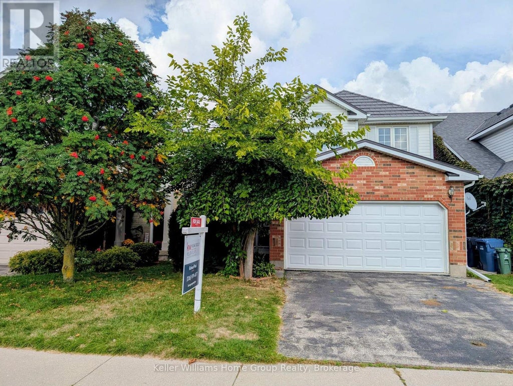 Welcome to your new Home in the highly sought after South End of Guelph! This 2 Story, double car garage is perfectly located for families. There are schools, bus lines and every amenity you need within walking distance as well and even a brand new Recreation Centre being built in the area, with an easy commute to the 401 this home has it all! Step through your covered porch and come inside to this 3 good sized bedrooms (2 of which have brand new carpet!), 3 bathroom detached home with plenty of space for you and your family. Imagine yourself sitting in your freshly painted living room with vaulted ceilings and hardwood floors and cozying up to your gas fireplace, enjoying the open concept on the main floor which is also great for entertaining, From your kitchen, take a step outside to your large finished deck and well laid out large yard that comes complete with garden space, an apple and a cherry tree! The finished basement provides bonus recreation space as well as an office and a 3 piece bathroom to have the flexibility of a variety of uses. To top it off you will love that the home has a metal roof, brand new garage door and updated furnace. This is one you wont want to miss! Some Notables - Metal Roof (2014), Furnace(2022), New Garage Door (2024), New Carpet in upstairs bedrooms (id:6289)