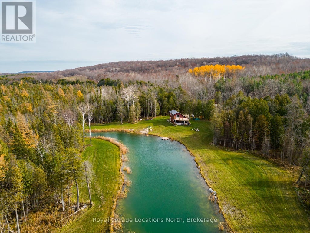 A Rare 25-Acre Nature Retreat with Private Ponds & Artisan Craftsmanship Plus Airbnb Potential. Welcome to your own private haven nestled within 25 serene acres, where two peaceful ponds, Rocklyn Creek, and a beautifully renovated 3-bed, 2-bath home come together to create a retreat like no other. The large pond, 12 feet deep, is stocked with rainbow trout. In winter, it transforms into your very own skating rink or hockey rink surrounded by picturesque snow-covered trees. The home is a true blend of craftsmanship and comfort, featuring pine walls and ceilings, solid pine doors, and rich hardwood floors. Maple stairs and custom cedar trim, bannisters, and railings sourced directly from the property add warmth and character throughout. The heart of the home is the open-concept kitchen, dining, and living area, anchored by a cozy propane fireplace and framed by serene forest views. The kitchen boasts solid wood cabinetry, stainless-steel appliances, and granite countertops. Each bathroom features cedar-clad ceilings, blending rustic charm with modern luxury. Upstairs, the primary suite overlooks the pond and surrounding forest, offering direct access to a spacious 24' x 10' private deck. The ensuite bathroom includes a soaker tub with tranquil views the perfect way to unwind after a hike or quiet morning stroll. In the warmer months, enjoy the fresh country air from your fully screened-in 24' x 10' main-level porch, ideal for peaceful mornings or relaxed evenings with friends. With its natural beauty, unique features, and prime location just a short drive to Blue Mountain and private ski clubs this property also offers excellent potential as a high-demand Airbnb retreat perfect for guests seeking privacy, outdoor experiences and peace. Zoned NEC, this property ensures long-term privacy, protected beauty, and a rare opportunity to live, relax, and host in one of Ontario's most scenic natural landscapes. (id:6289)