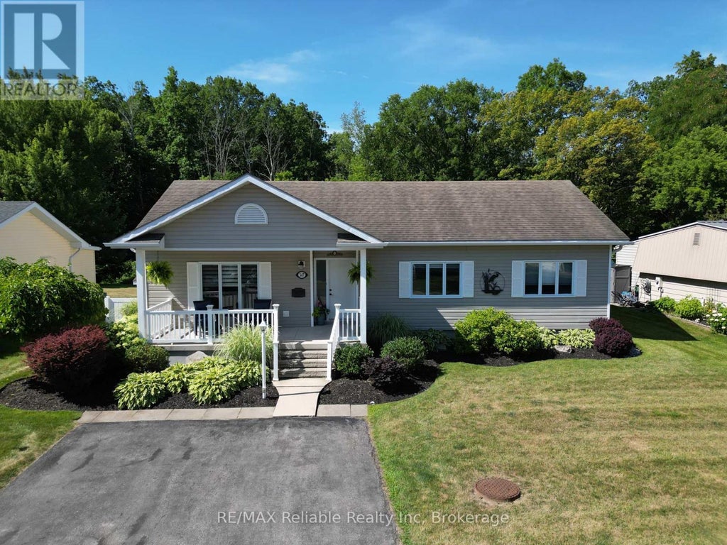 Welcome to your new home in Grand Bend! Nestled in the heart of Grand Cove, a vibrant 55+ lifestyle community just across from the Oakwood Resort golf course. This beautifully updated home offers comfort, privacy, and an unbeatable location. Live the resort lifestyle every day with access to a wide range of amenities: an inground pool, tennis and pickleball courts, woodshop lawn bowling, walking trails, and not one but two clubhouses. One features a gym, kitchen, billiards, and a regular schedule of social events, while the second offers a large deck overlooking a peaceful pondperfect for relaxing or gathering with friends. Step inside to discover a stylishly renovated home featuring new vinyl plank flooring, fresh paint throughout, and an updated kitchen with modern appliances. The spacious family room at the back of the home is filled with natural light from large windows that frame your private backyard, backing directly onto the walking trails for a tranquil, green view. The oversized primary bedroom easily fits a king-sized bed plus your dressers, and includes a walk-in closet. A second bedroom offers space for guests or a home office setup. The 5 piece bathroom includes your washer and dryer for ultimate convenience. Enjoy outdoor living with both a covered front porch surrounded by lush landscaping and a private, covered back deck with an outdoor ceiling fan. Theres plenty of storage too, with a large 13 ft x 15 ft attached storage room at the rear of the home and an additional garden shed. Gas furnace, gas fireplace, and air conditioning keep you comfortable year-round. Just a one-minute stroll from extra visitor parking and the tennis courts, this home blends convenience, community, and comfort. Land lease is $850/month for new owner and includes use and maintenance of the tennis courts, lawn bowling, walking trails, clubhouses, inground pool, gym, woodshop, and snow removal, and visitor parking. (id:6289)